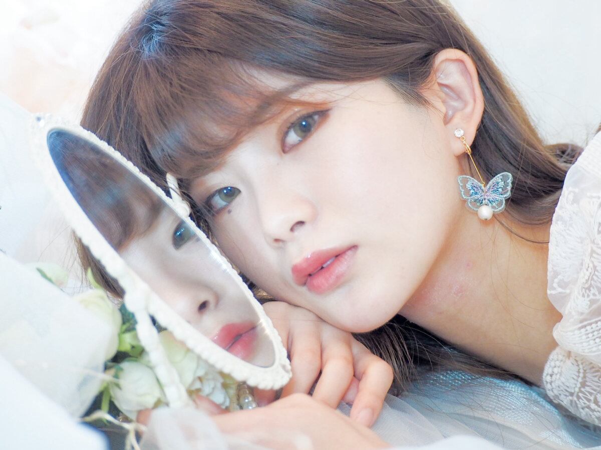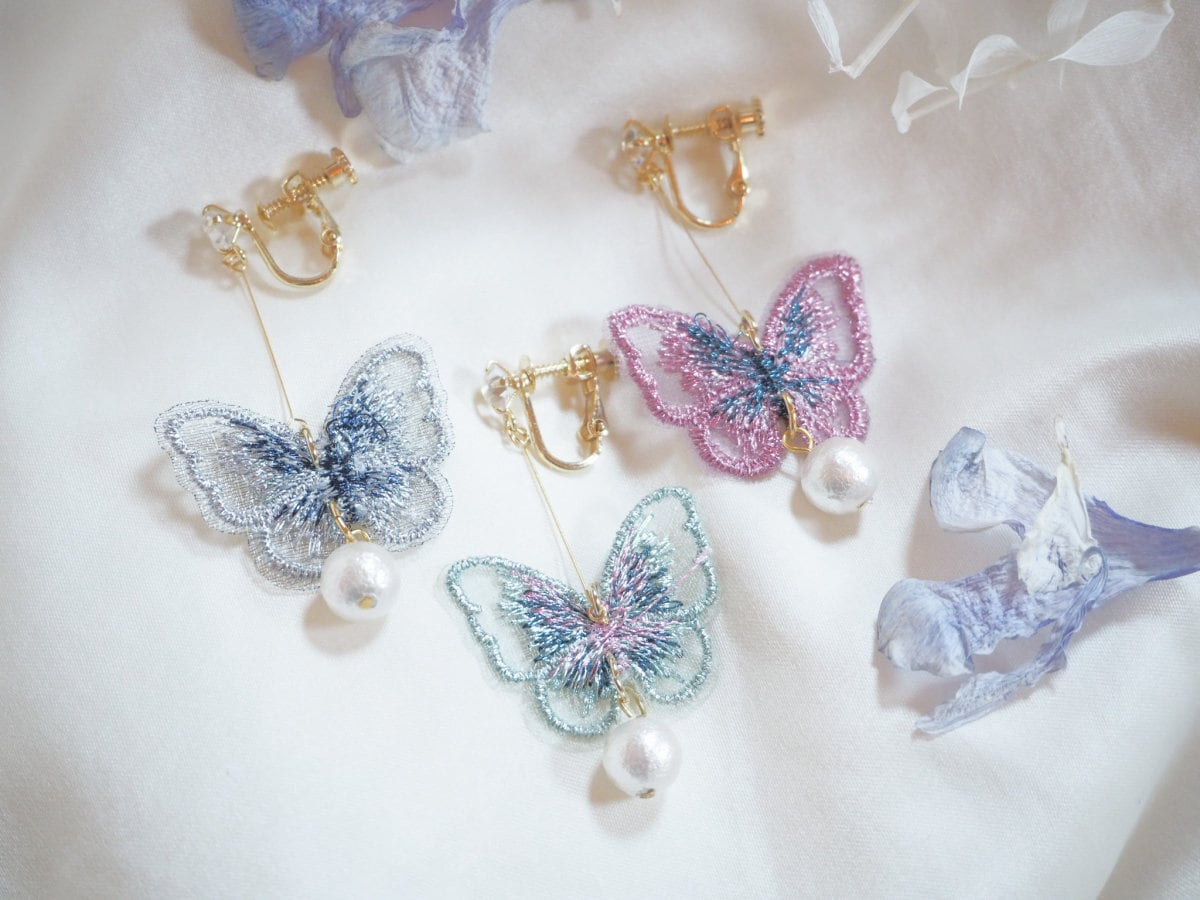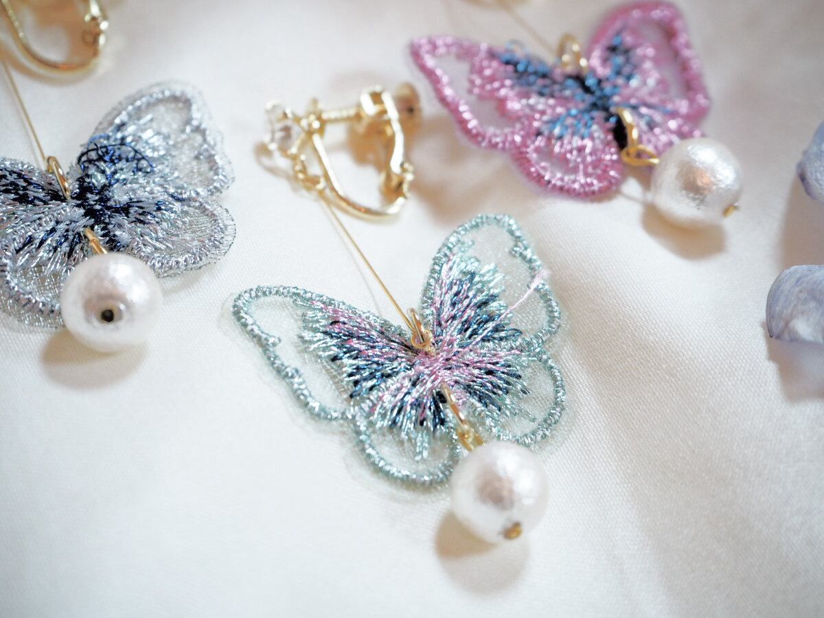 羽根の音色(パールと刺繍蝶イヤリング&ピアス)