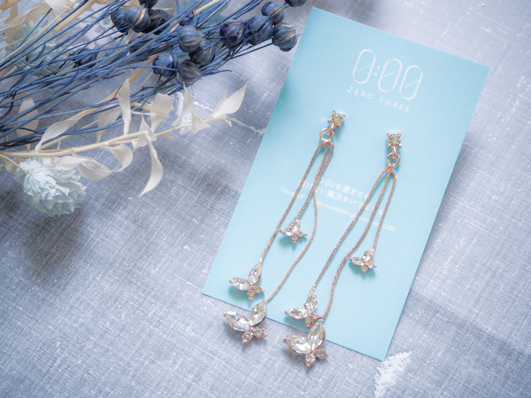 ピーターパンと空飛ぶ秘密(3連ビジュー蝶イヤリング&ピアス)