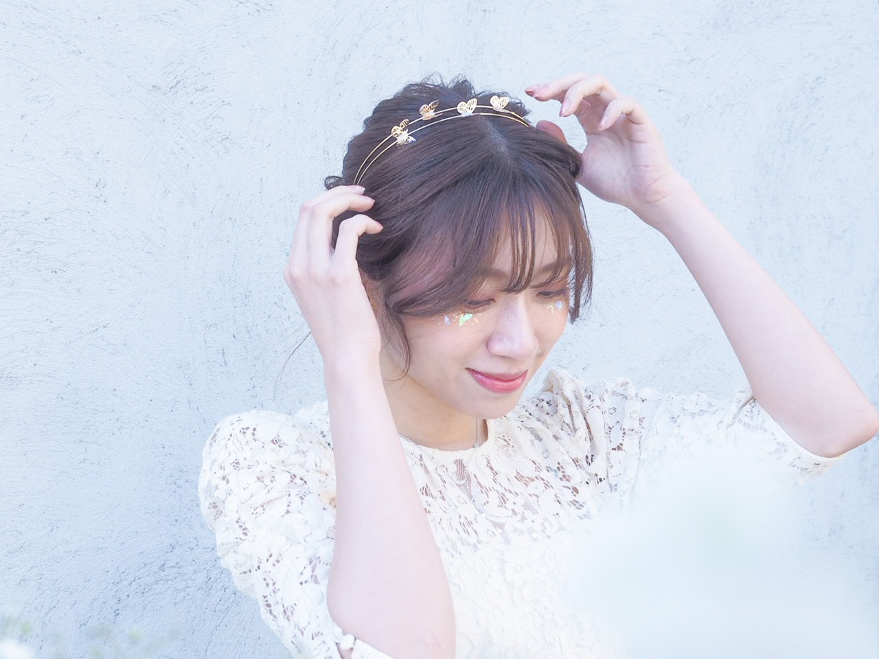 2連のカチューシャになっていることで横顔も華やかに、普段使いはもちろんパーティーシーンにもこれひとつで雰囲気のあるヘアスタイルにすることができます。