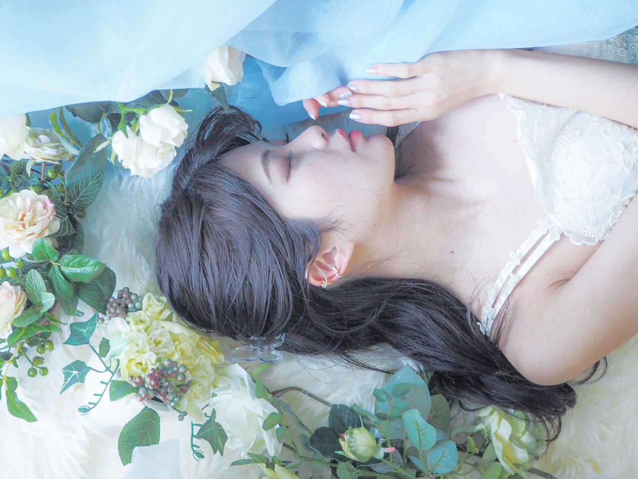 おうし座のプレアデス星団である六連星(むつらぼし)のように小粒ビジューが6粒散りばめられた輝く星と、アルデバランのようにクリスタルがランダムに連なる2つがセットのイヤーカフです。